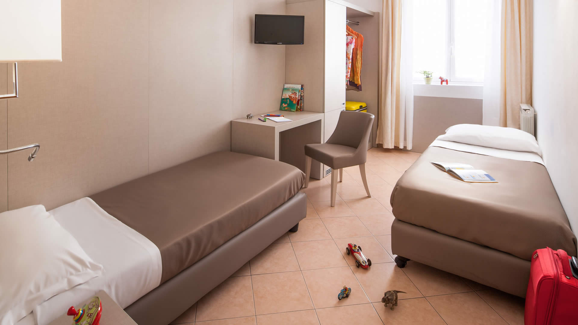 ティグッリオ湾と海岸通りに面した20室のお部屋のテラスからは美しい海のパノラマをお楽しみいただけます。またお部屋にはWiFiなどあらゆるサービスをご用意いたしております。 ご家族でのご利用に最適な2部屋のお部屋もございます。 身体障害者のお客様にご利用いただけるお部屋もございます。 全てのお部屋に