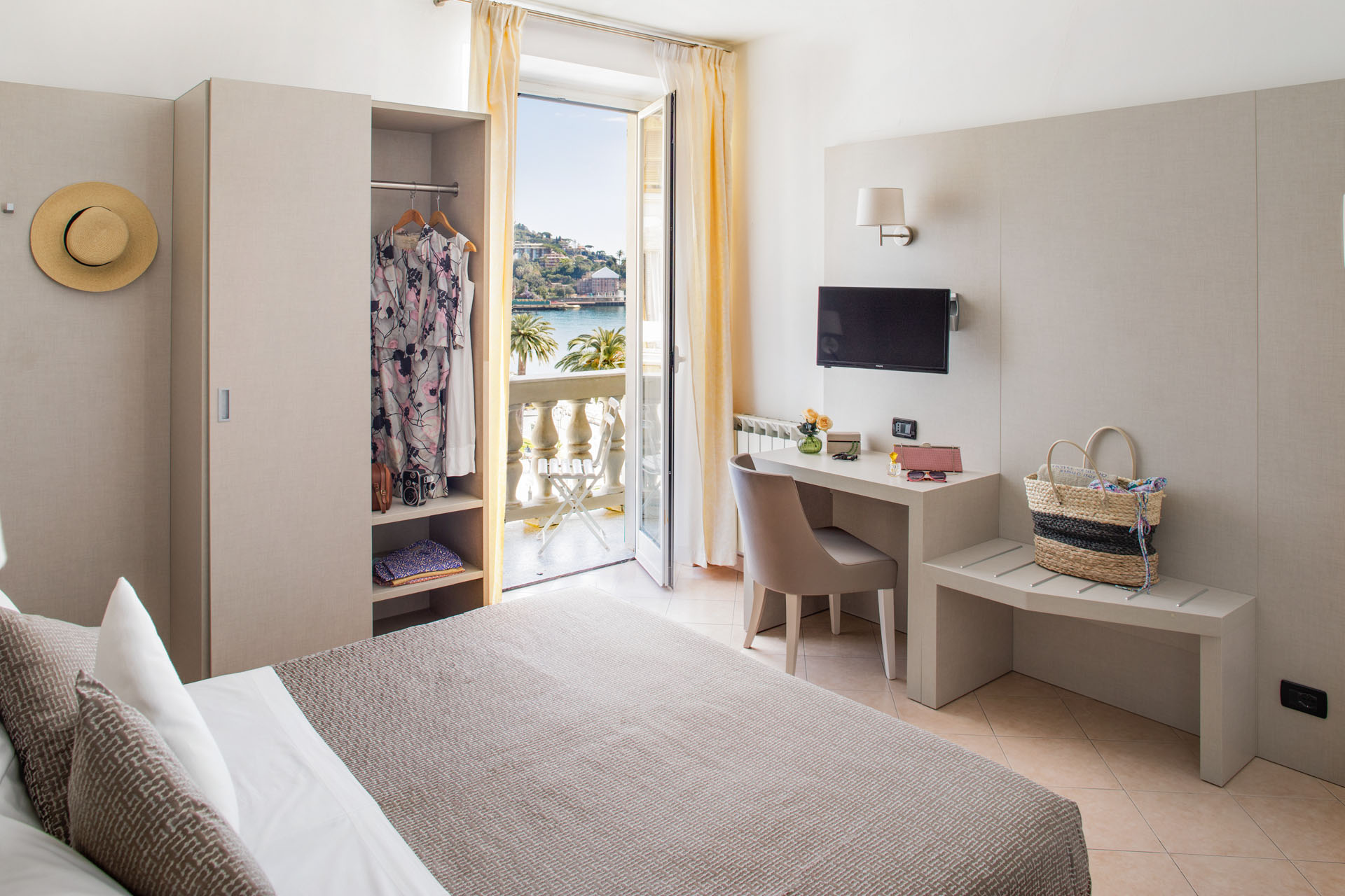 Queste camere vantano una vista laterale sul mare che dona luminosità al suo interno e offre tutti i comfort necessari per una vacanza al mare.